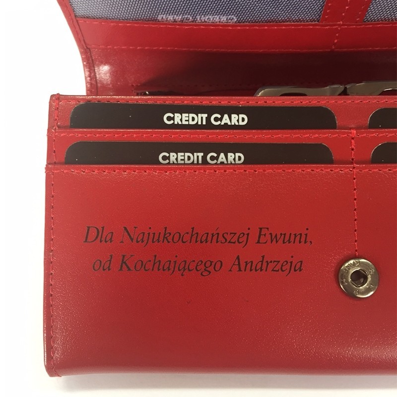 Usługa dodatkowa, której celem jest spersonalizowanie produktu poprzez dodanie dedykacji, imienia i nazwiska, inicjałów, itp. Polecane szczególnie, jeżeli produkt oferowany jest na prezent. Grawerowanie może dotyczyć takich produktów jak portfele, teczki skórzane, etui, itp.