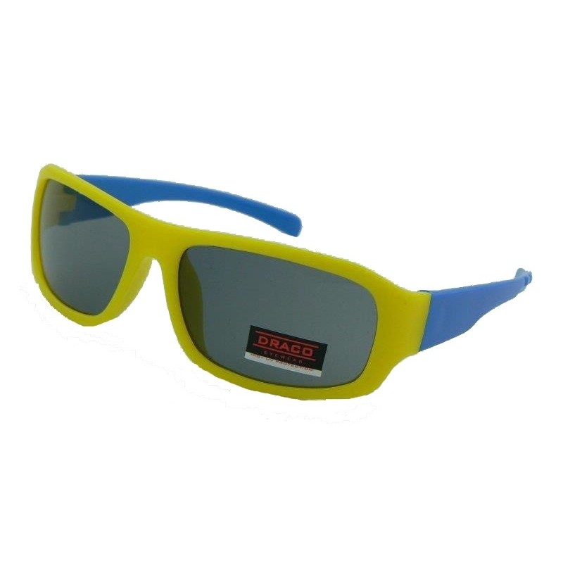 Okulary przeciwsłoneczne dla chłopców marki DRACO, w kolorze żółto - niebieskim.