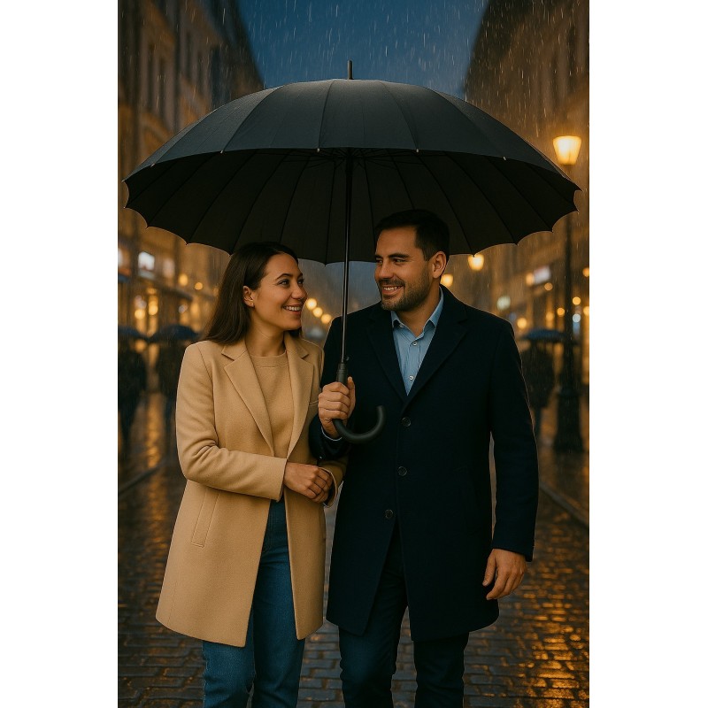Automatyczny parasol męski XXL 130cm o wyjątkowej 16-brytowej konstrukcji w kolorze czarnym.