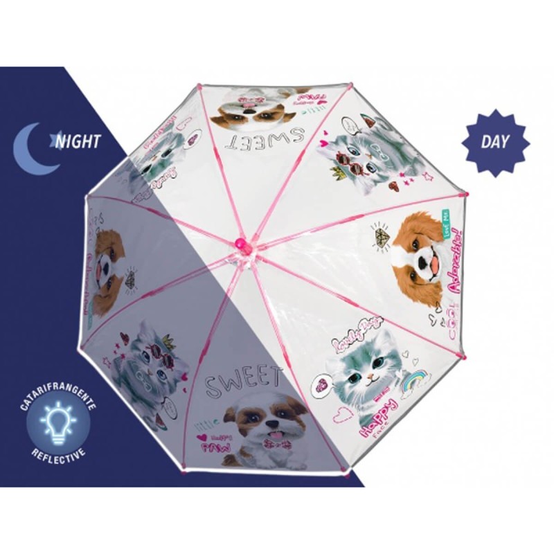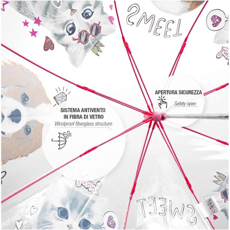 Przezroczysta, bezpieczna, wytrzymała parasolka dziecięca włoskiej firmy PERLETTI.