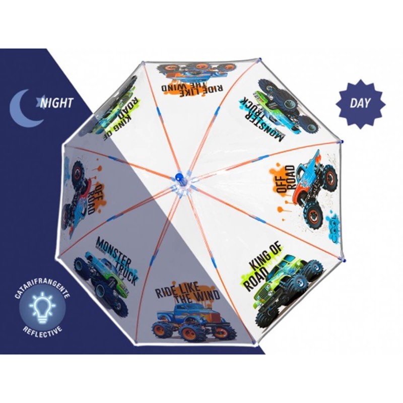 ►Parasolka obszyta została odblaskową lamówką, co znacząco zwiększa widoczność dziecka po zmroku.