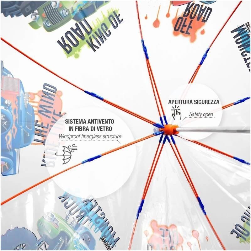 ►Przezroczysta czasza ułatwia dziecku orientację, gdyż pomimo zasłonięcia twarzy parasolem nadal cała okolica jest widoczna.