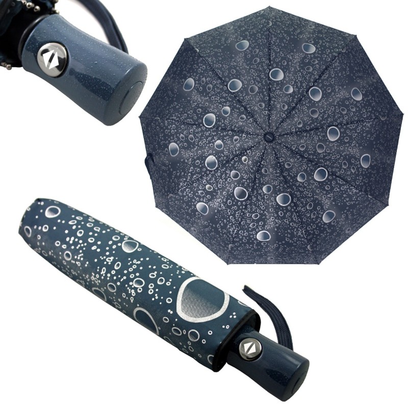 Otwierana i zamykana automatycznie parasolka damska Tiross – Srebrne Krople, granatowa