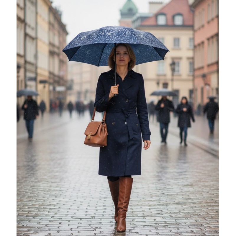 • Stylowy wzór „srebrne krople” – elegancja w deszczowy dzień