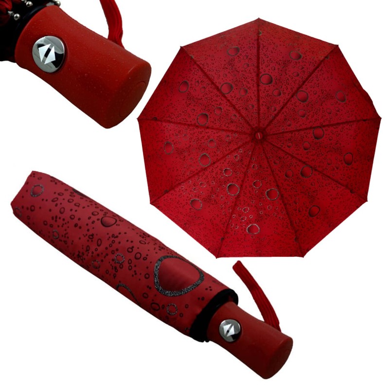 Otwierana i zamykana automatycznie parasolka damska Tiross – Srebrne Krople, bordowa