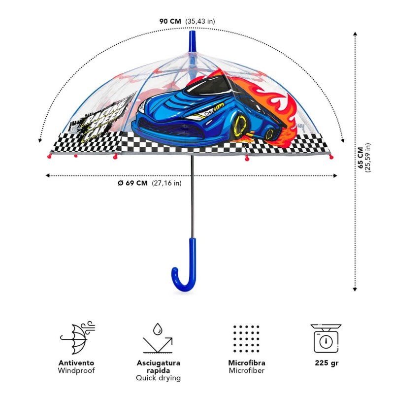 Przezroczysta, bezpieczna, wytrzymała parasolka dziecięca włoskiej firmy PERLETTI.