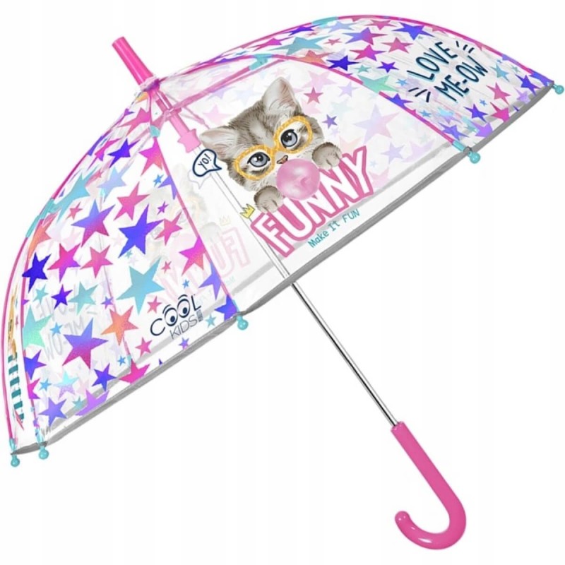 Głęboka bezpieczna parasolka dziecięca PERLETTI przezroczysta KOTKI