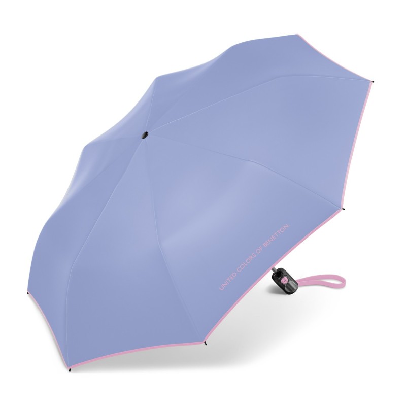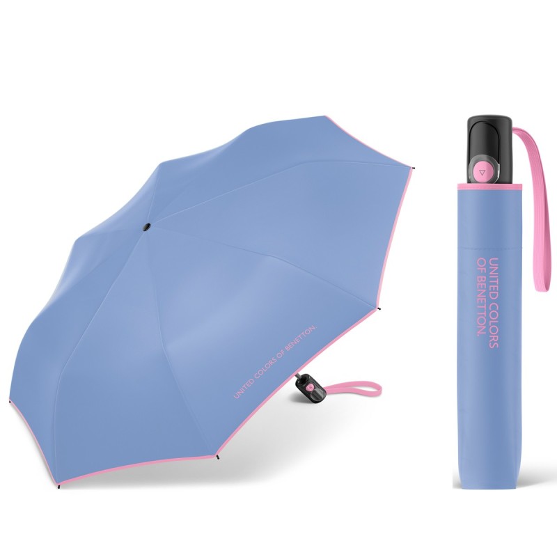 Automatyczna, lekka, parasolka BENETTON United Colors jednokolorowa z kontrastowym obszyciem. Otwierana za pomocą przycisku, a składana manualnie.