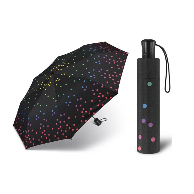 Automatyczna parasolka marki Happy Rain otwierana przy pomocy jednego przycisku, zamykana manualnie.