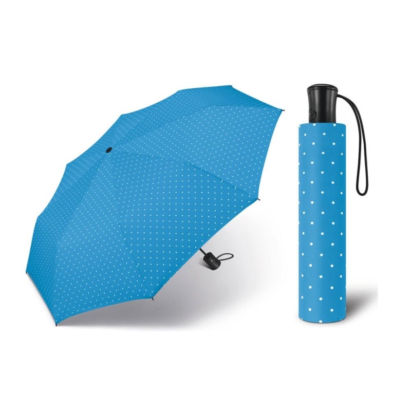 Automatyczna parasolka marki Happy Rain otwierana przy pomocy jednego przycisku, zamykana manualnie.