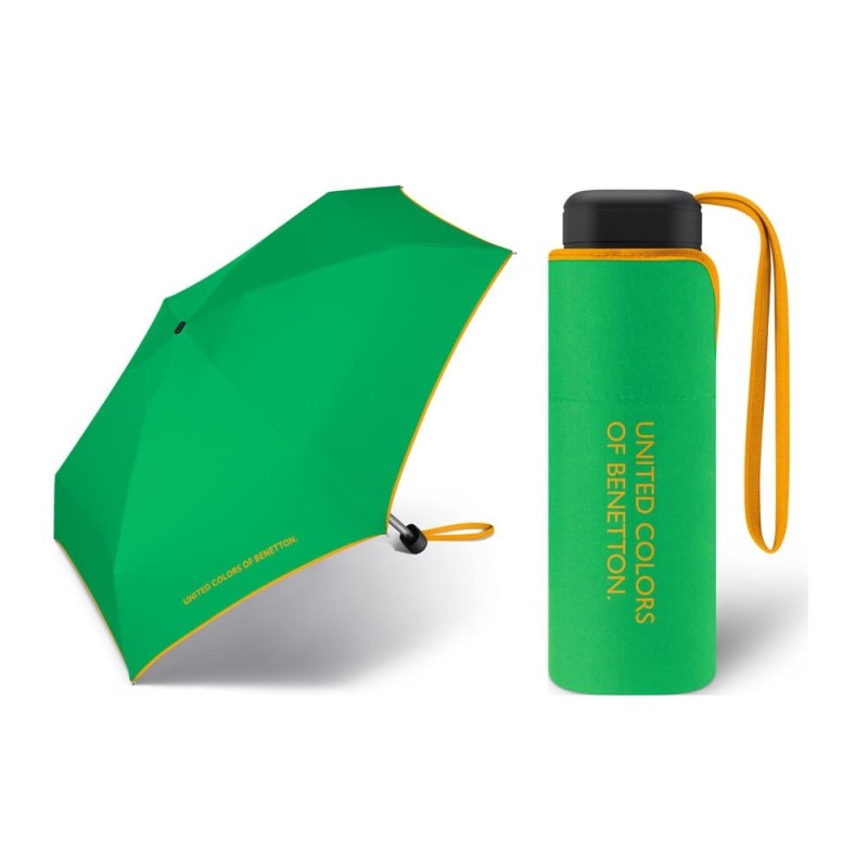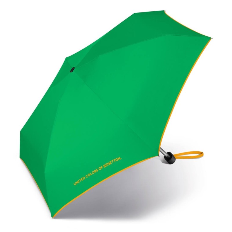 Manualna, lekka, kieszonkowa parasolka BENETTON United Colors jednokolorowa z kontrastowym obszyciem.