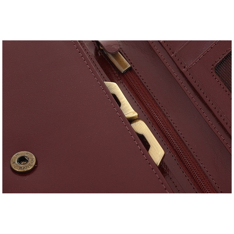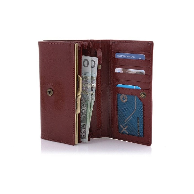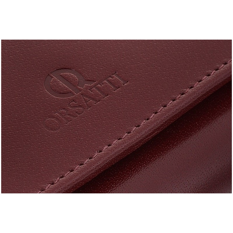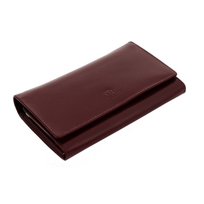 Damski portfel marki Orsatti w kolorze koniakowym, 3 kieszenie na banknoty, miejsce na 6 kart kredytowych, miejsce na bilon, 2 kieszenie na dokumenty, eleganckie tekturowe pudełko + torebka prezentowa gratis