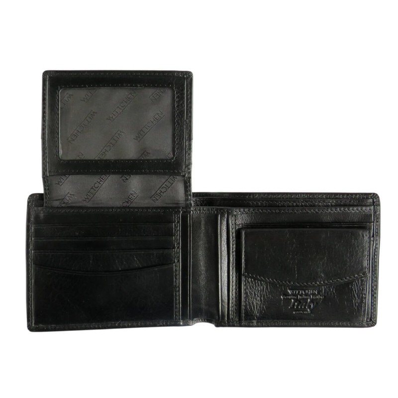 Nieduży, elegancki portfel męski wykonany ręcznie, z wysokiej jakości miękkiej skóry cielęcej. Logo - herb Wittchen wytłoczony na skórze. Produkt skierowany do osób ceniących praktyczne zastosowanie z luksusowym wykończeniem oraz atrakcyjny design.  Portfel wyposażony został w technologię RFID Protection zabezpieczającą przed kradzieżą danych zapisanych w formie elektronicznej na kartach.