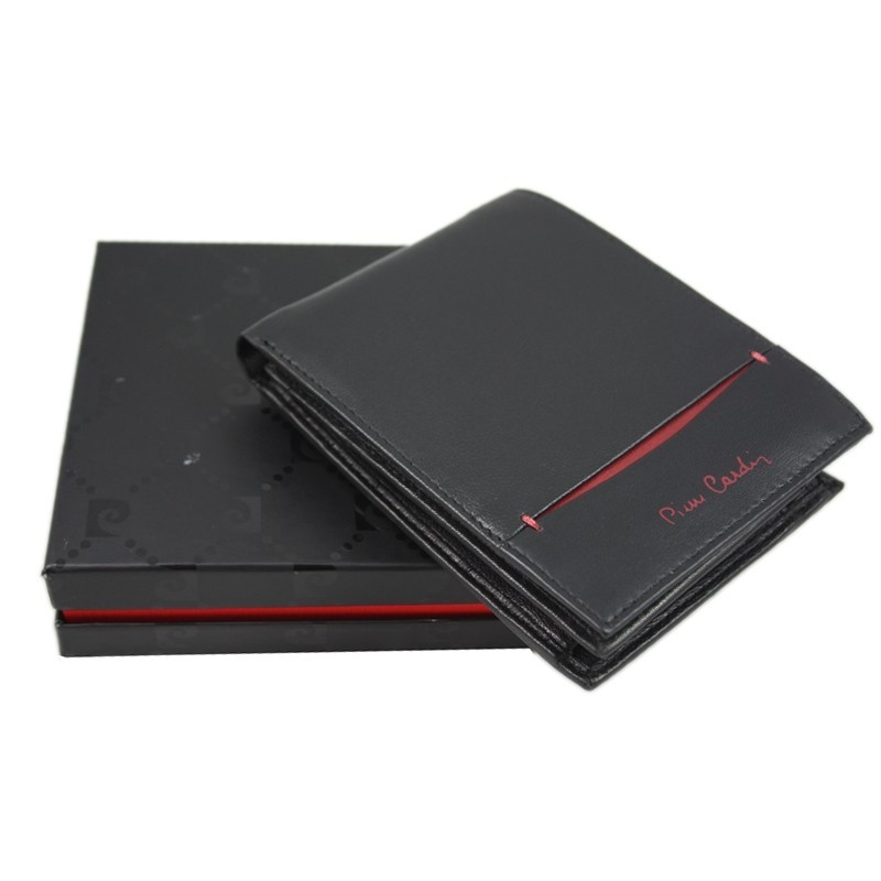 Portfel męski Pierre Cardin ze skóry naturalnej, czarny + bordo